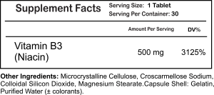 Vitamin B3 (Niacin): 500 mg (3125% Daily Value)